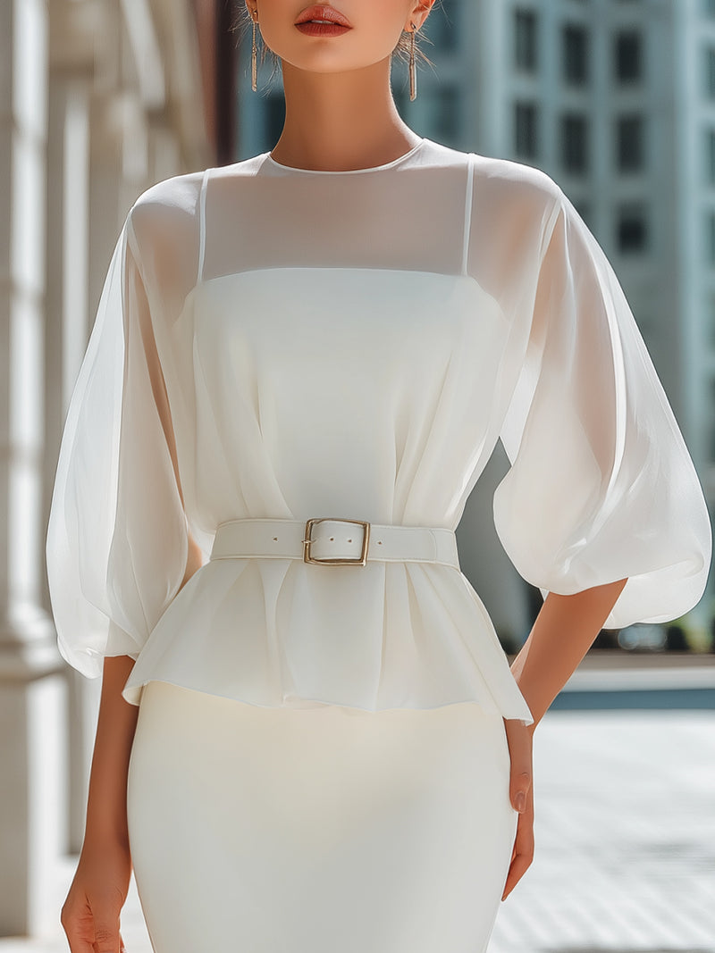 Sheer Chiffon Blouse And Slip Dress Layered Two-Piece Set