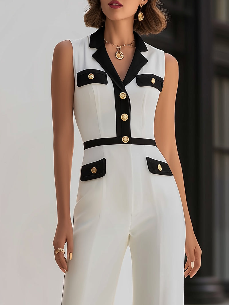 Contrast-Trim Tailored Sleeveless Jumpsuit