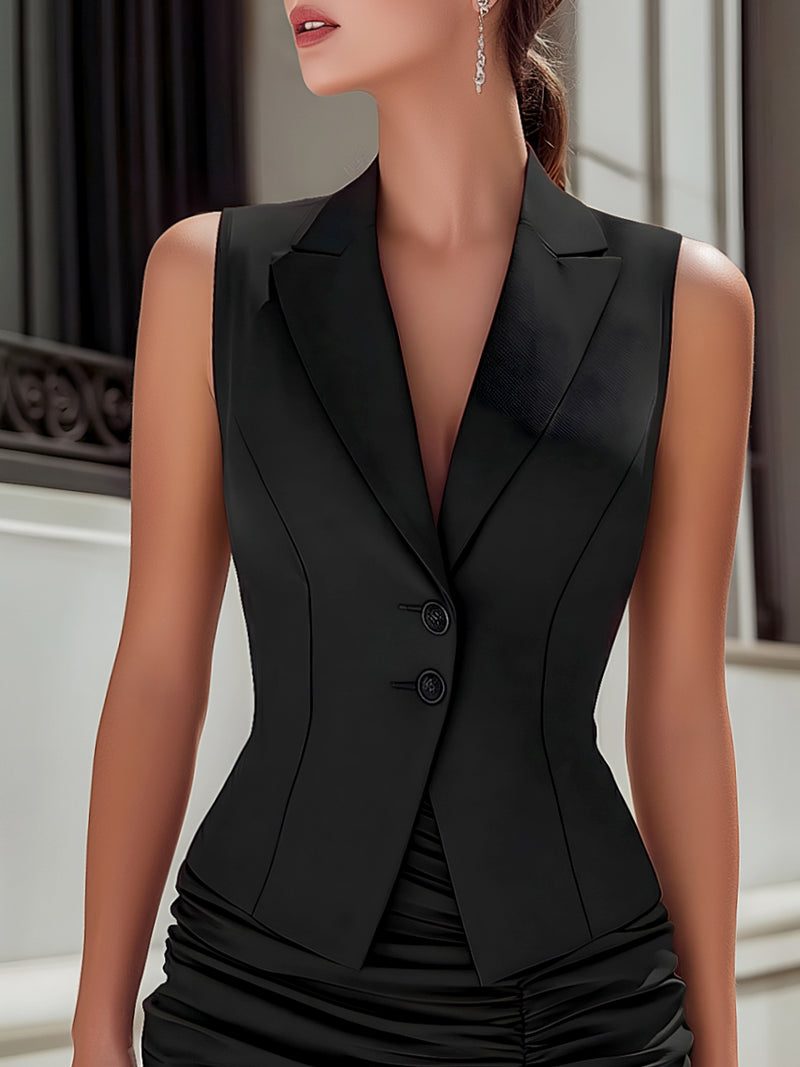 Sleeveless Tailored Vest & Ruched Skirt Set