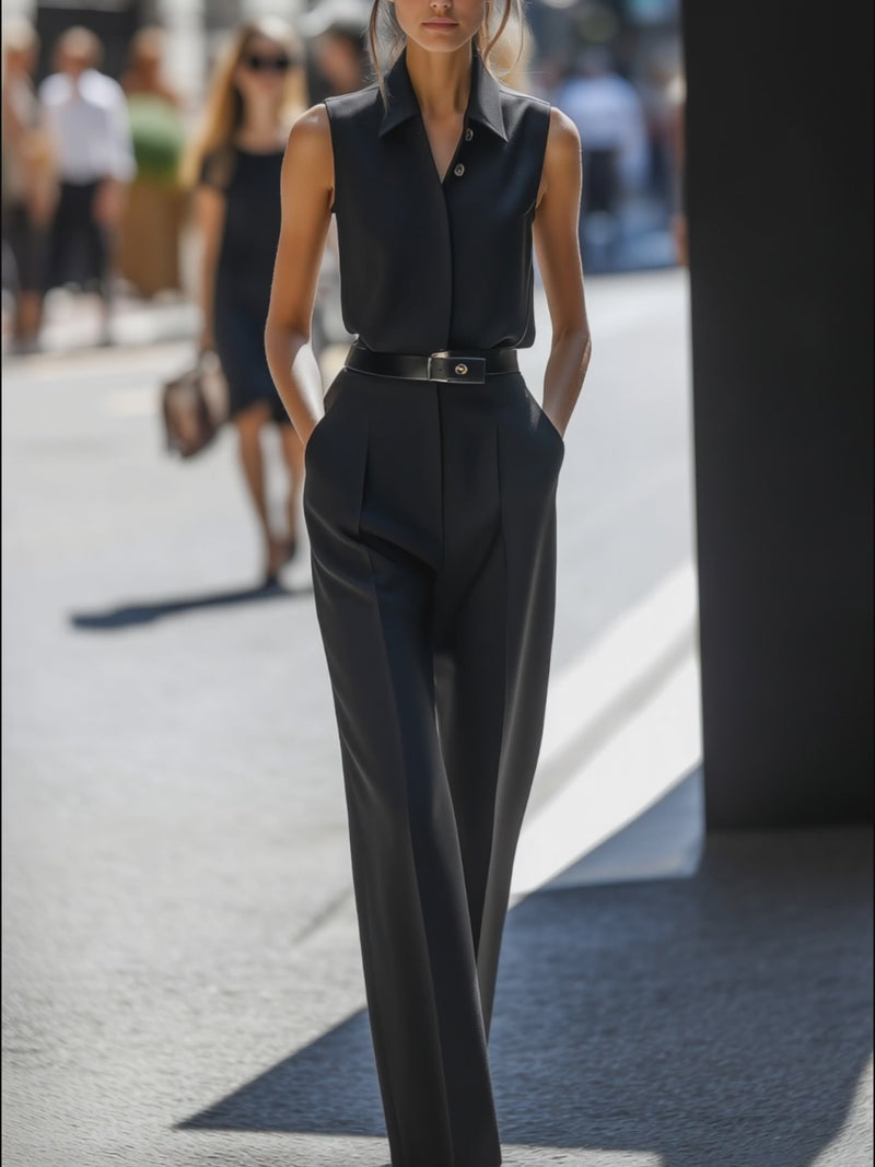 Sophisticated Sleeveless Peplum Jumpsuit In Charcoal Gray