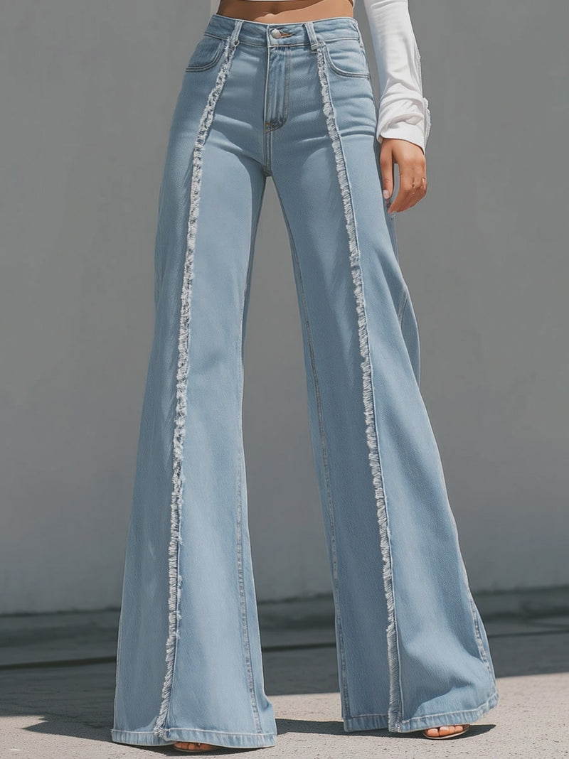 High-Waisted Light Blue Flared Jeans With Raw Edge Seams