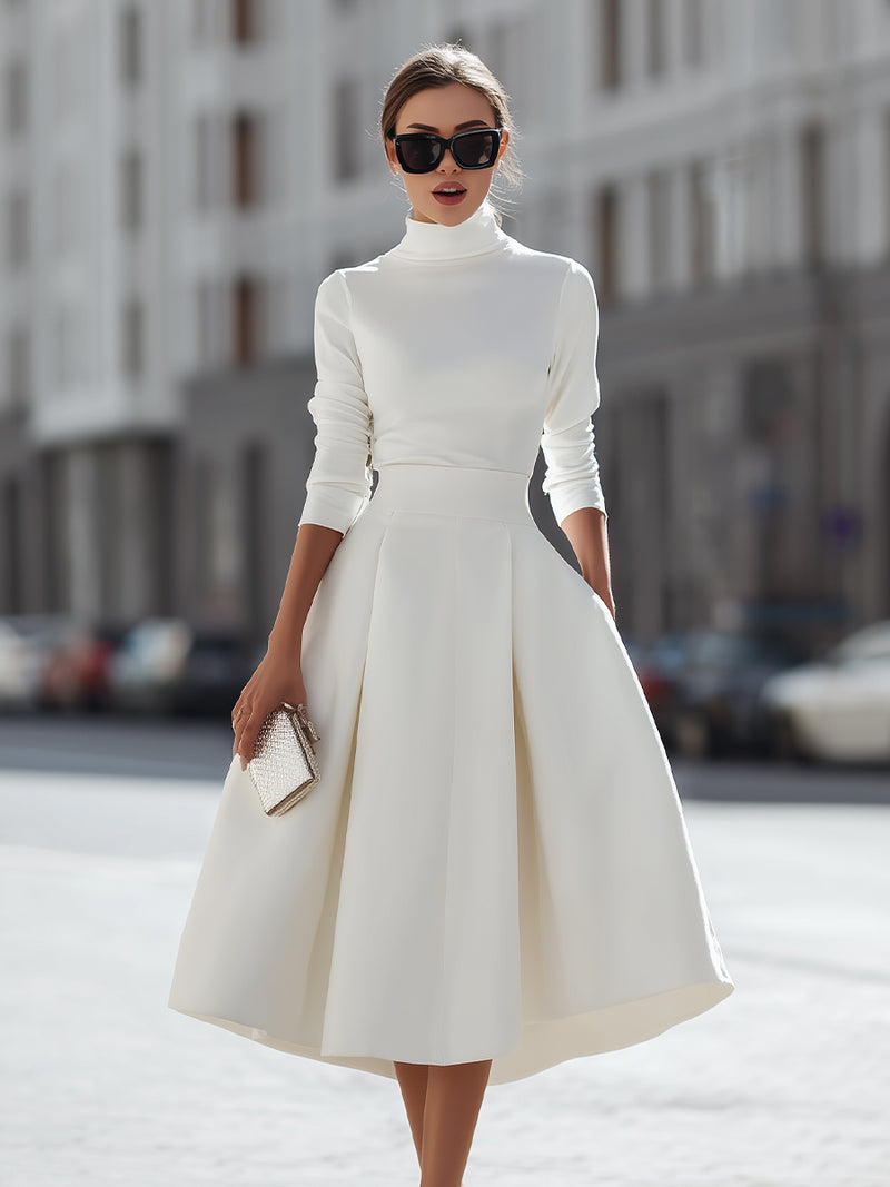 Long Sleeve High-Neck Top And Midi Skirt Two-Piece Set