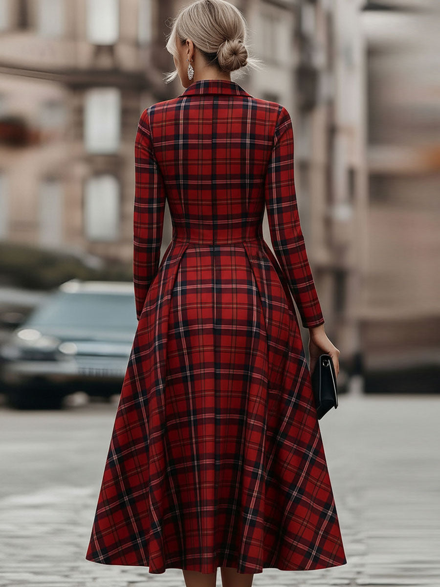 Elegant Long Sleeve Plaid Dress - Perfect Blend Of Classic And Contemporary
