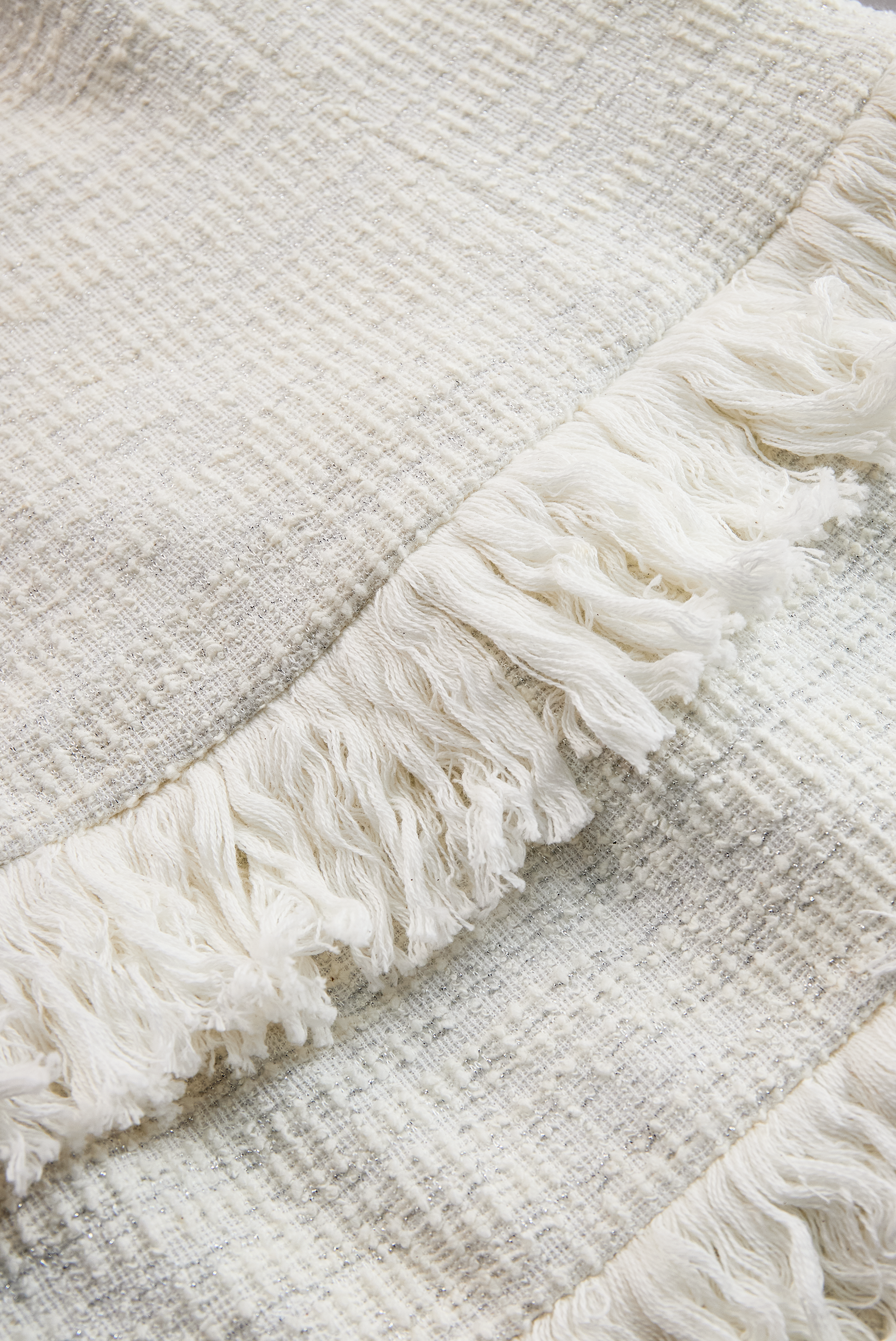 • Material: Luxurious tweed blend with delicately applied fringe trim