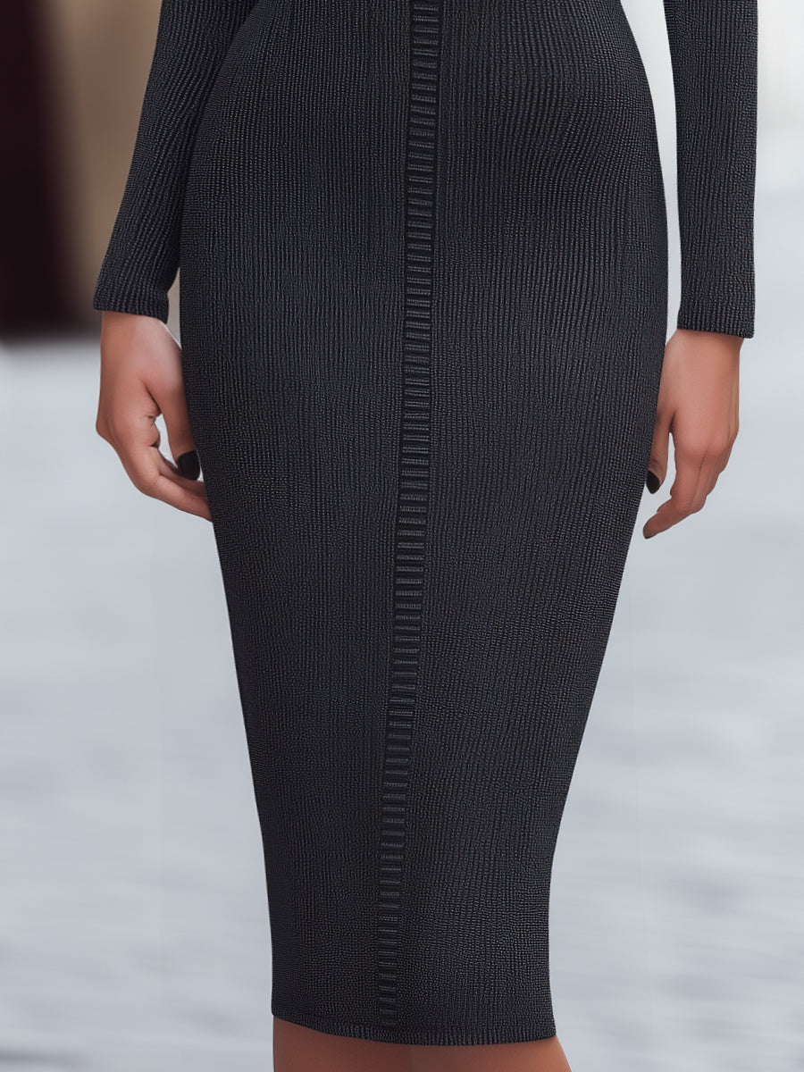• Design:  Slim-fit midi dress with vertical rib texture, front keyhole detail, and long sleeves