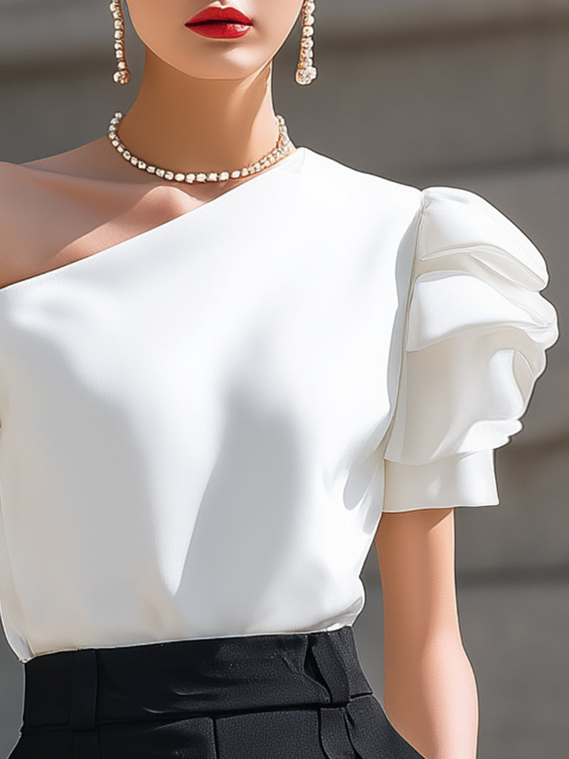 Elegant One-Shoulder Ruffle Sleeve Blouse