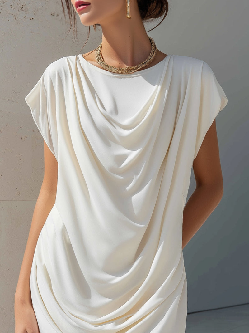 Draped Cowl-Neck Cap Sleeve Mini Dress