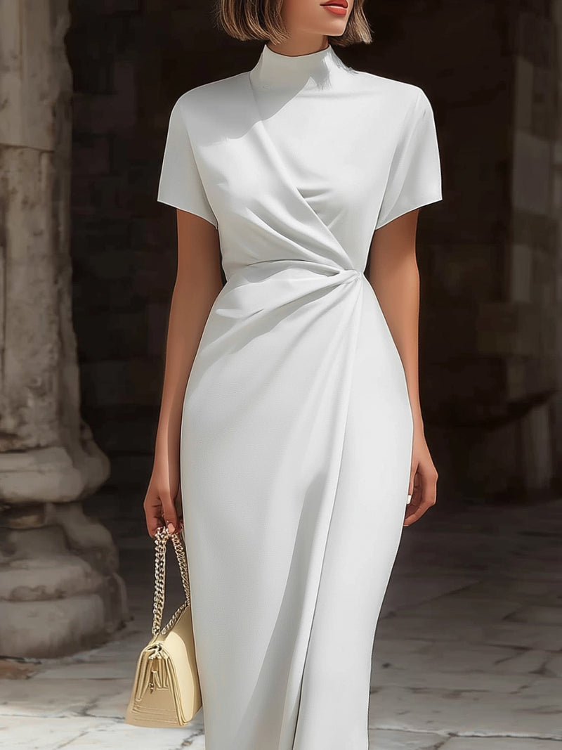 Twist-Waist High-Neck Elegant Maxi Dress
