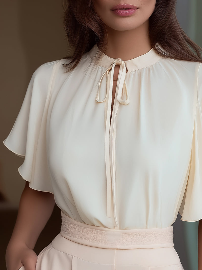 Tie-Neck Flutter Sleeve Elegant Blouse