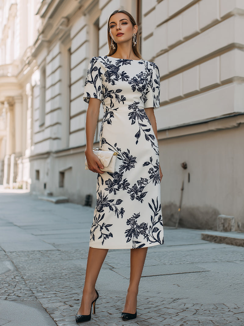 Botanical Print Short Sleeve Midi Dress