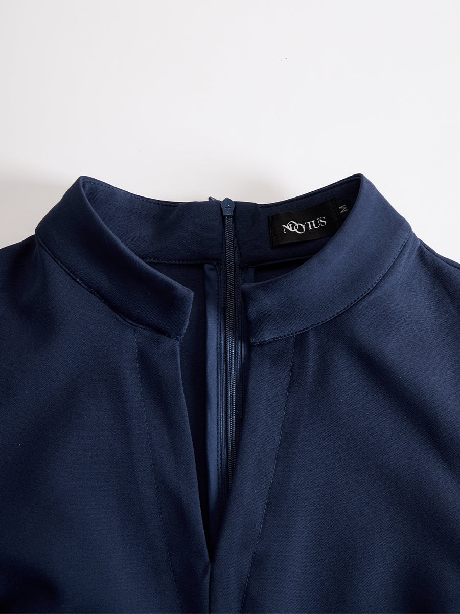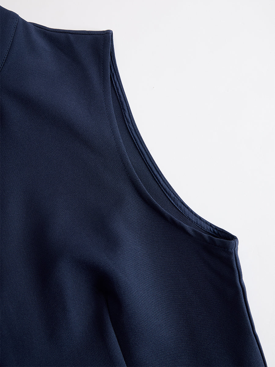 Mooyius introduces the Navy Sleeveless Plunge-Neck Wide-Leg Jumpsuit, tailored for the modern woman who blends professional polish with sleek, contemporary style. This jumpsuit features a sleeveless silhouette, a refined high neck with a subtle plunge detail, structured wide-leg trousers , and functional side pockets—all in a rich navy hue that balances versatility and sophistication.