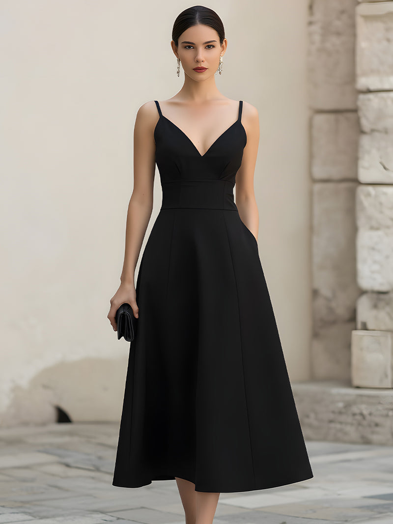 Spaghetti Strap V Neck Midi Dress