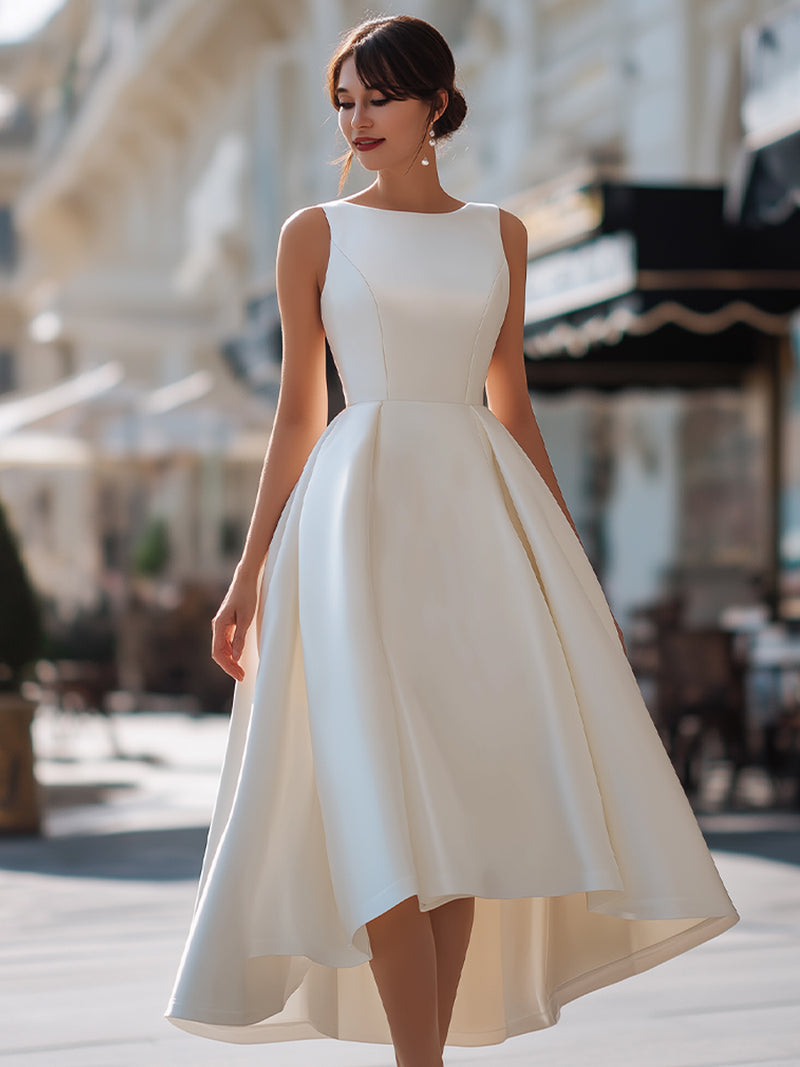 Vintage-Inspired Satin High-Low A-Line Party Dress