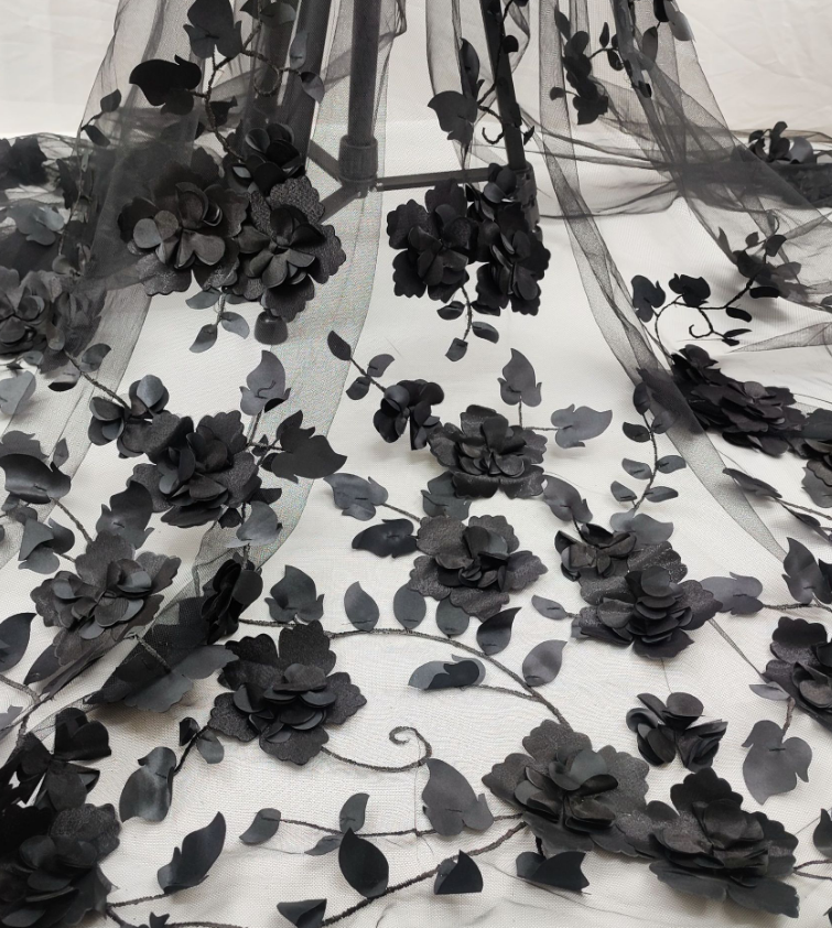 • Material:  High-stretch knit fabric; embroidered mesh with 3D floral appliqués