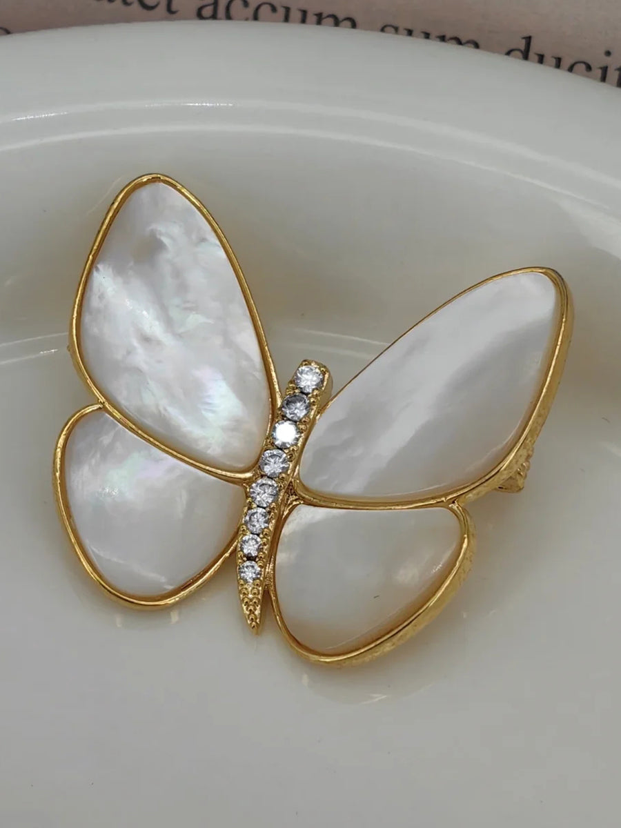 Mooyius introduces a poetic, light-catching accessory designed to bring effortless sophistication to every ensemble. This duo butterfly brooch pairs sculptural wings with a smooth, luminous finish, capturing the delicate movement of butterflies in mid-flight. Each wing is shaped with refined contours, creating a gentle curve that reflects ambient light with an airy, ethereal glow. The centerline is adorned with meticulously placed rhinestones that add subtle brilliance without overwhelming the design.