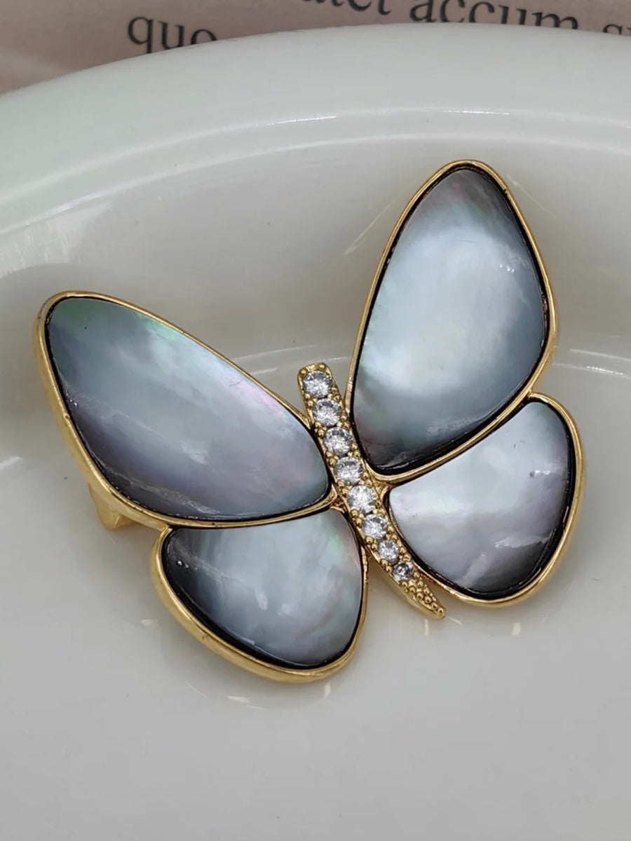 With its paired arrangement, the brooch offers a harmonious balance—one butterfly serene and soft, the other sleek and deeper in tone—allowing the piece to complement both minimal styling and more expressive outfits. Designed to elevate blazers, coats, scarves, evening dresses, or even structured handbags, this brooch becomes a transformative detail that introduces femininity, artistry, and a hint of modern luxury.