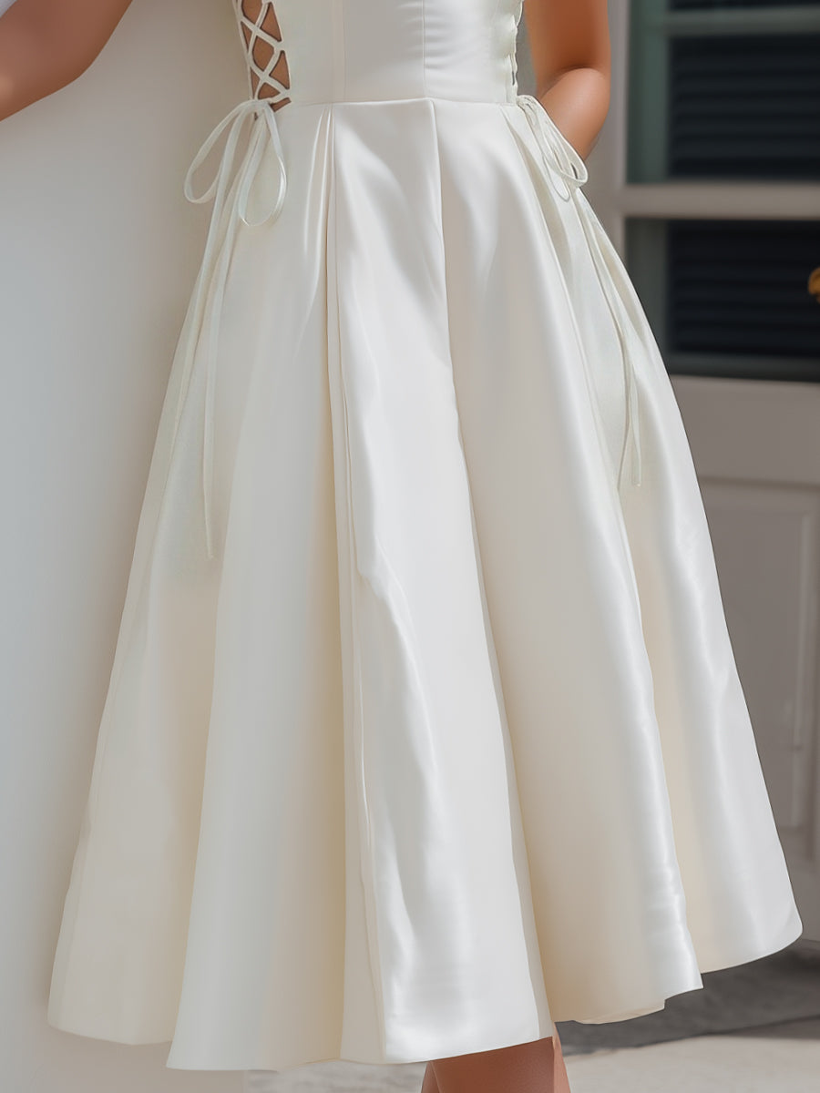 Lace-Up Side Satin A-Line Midi Dress