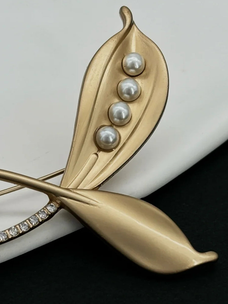Mooyius introduces an elegant artistic brooch inspired by the organic curves of a blooming lily. This sculpted design blends modern minimalism with classic femininity, creating an accessory that elevates any outfit with refined sophistication. The matte-golden leaf silhouette creates a fluid, graceful movement, while carefully placed pearl accents bring depth, luminosity, and delicate visual contrast.