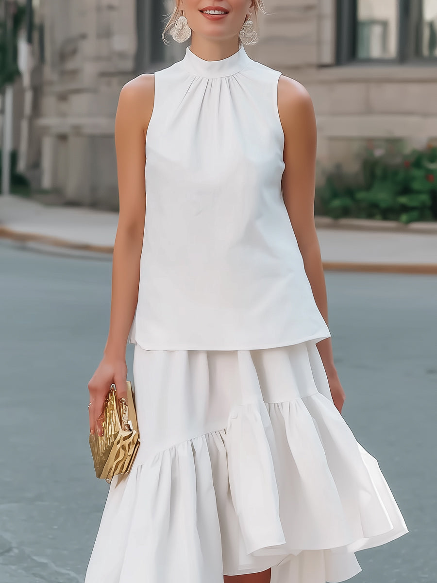 Sleeveless High Neck Top & Asymmetrical Ruffle Skirt Set