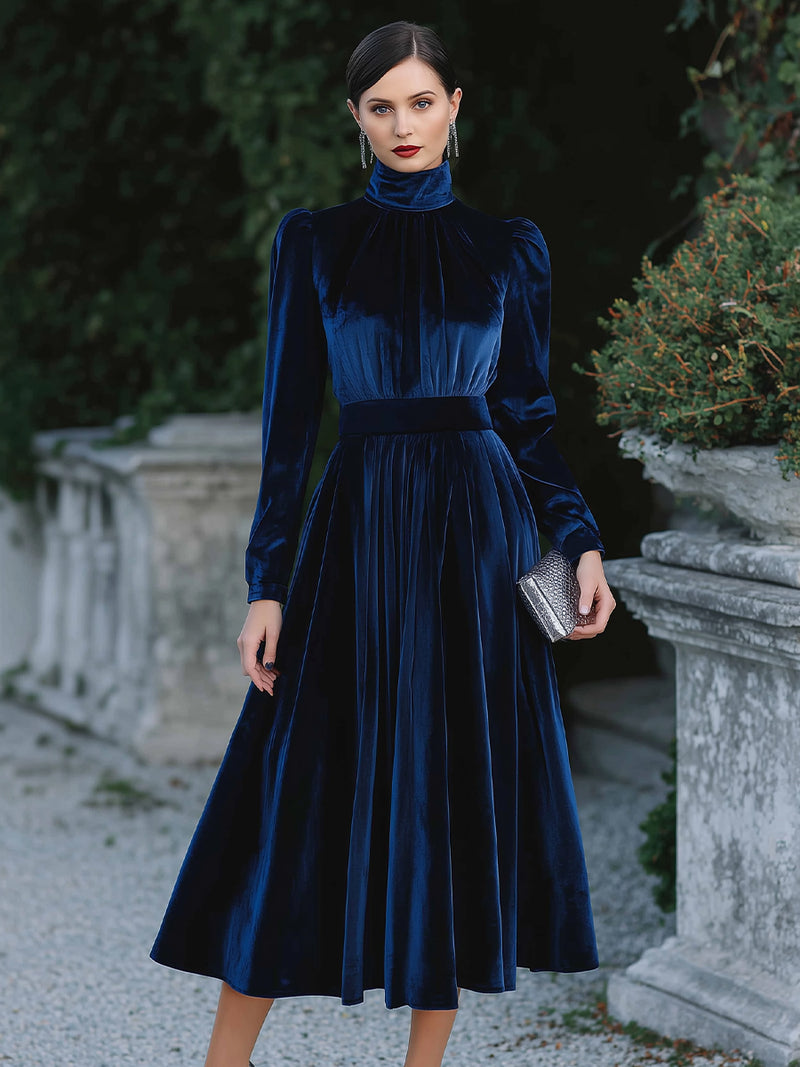 Collared Zip-Front Midi Dress With Tailored Pleats