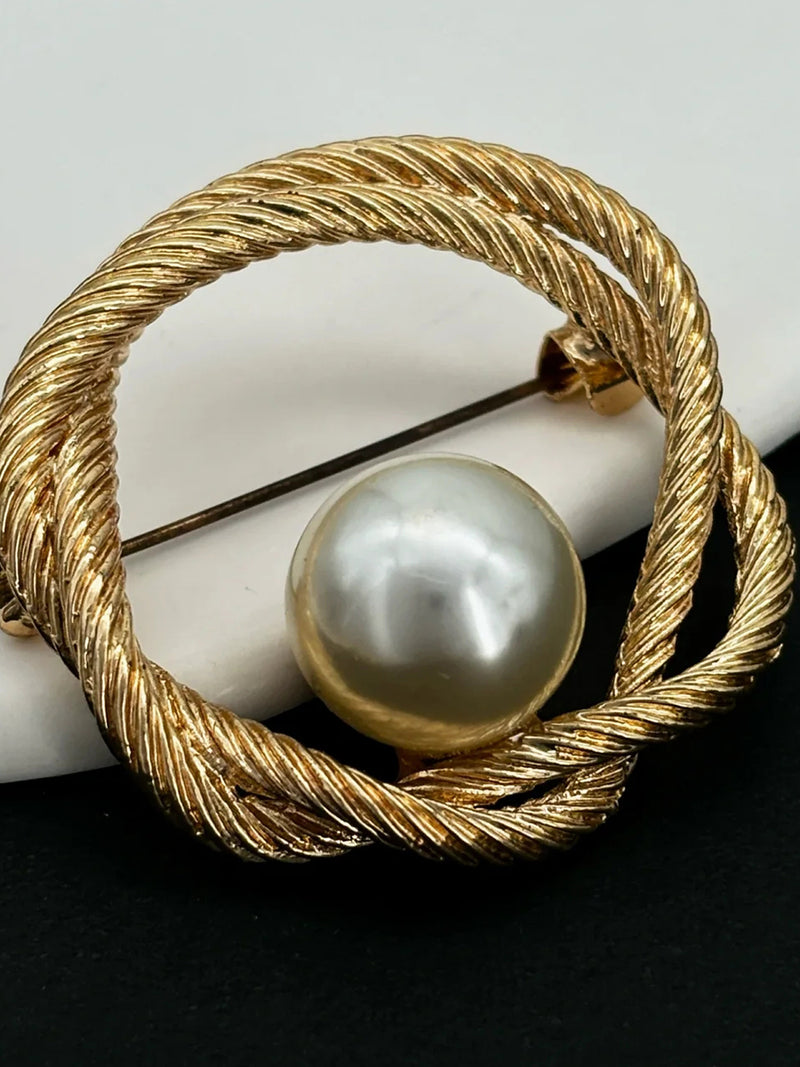 Sculpted Curve Pavé Brooch With Triple Pearl Drops