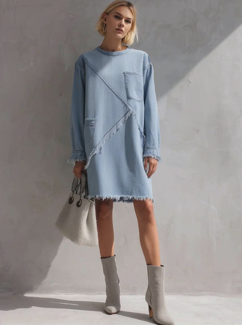 Elegant Sheer-Sleeve A-Line Midi Dress