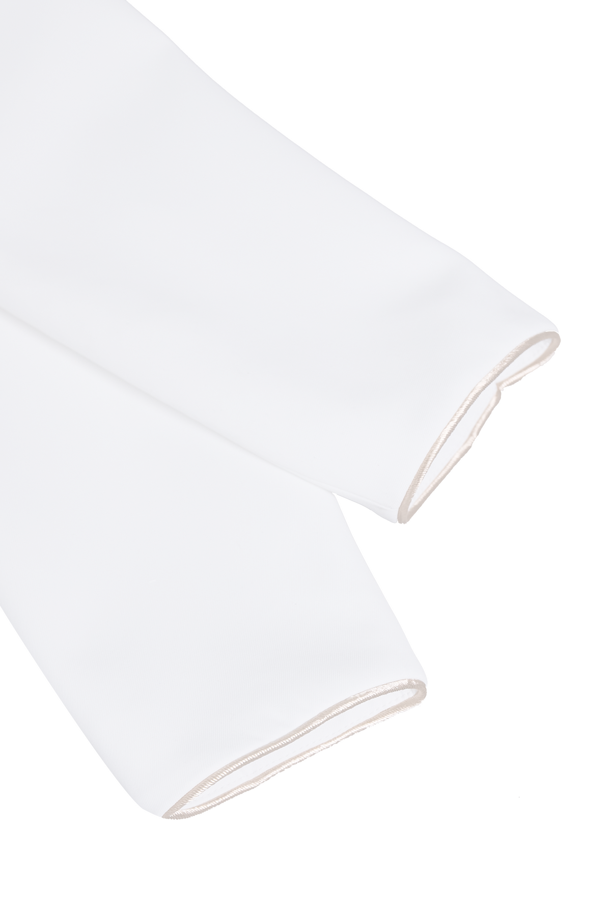 Designed to stand out, this two-tone blazer is both bold and refined. The asymmetrical black lapel adds drama, while the crisp white fabric provides a clean, minimalist silhouette. A statement gold button finishes off the look with a touch of elegance.