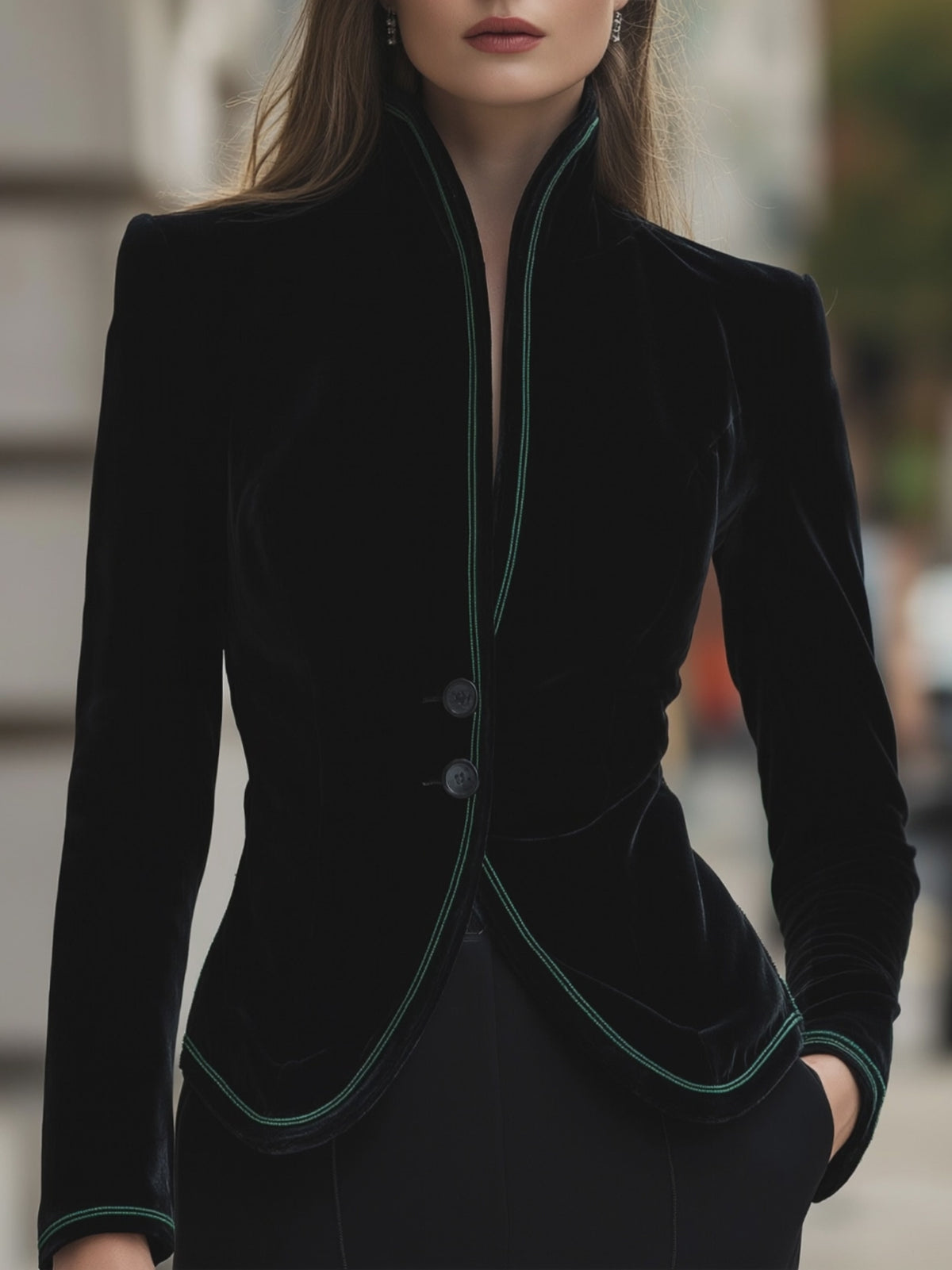Mooyius presents an exquisite interpretation of modern tailoring with this black velvet embroidered jacket. Crafted from plush velvet, this jacket exudes elegance with its sleek silhouette and commanding high collar.
