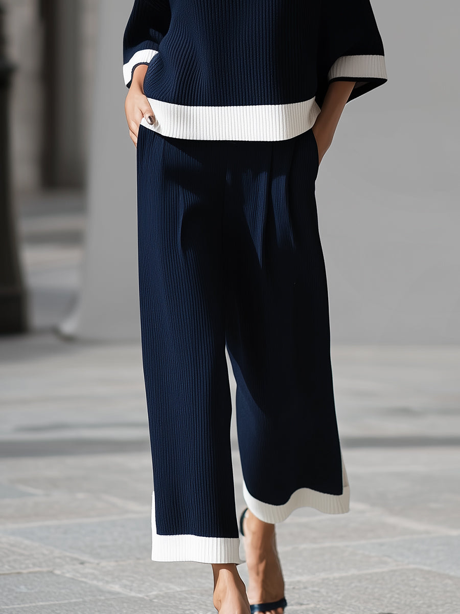 Sophisticated Nautical Ribbed Knit Two-Piece Lounge Set