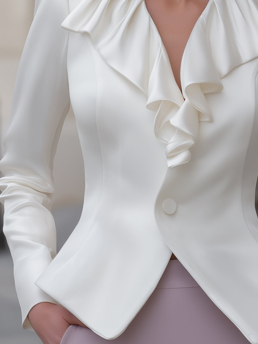 Elegant Ruffle Collar Tailored Long-Sleeve Blazer