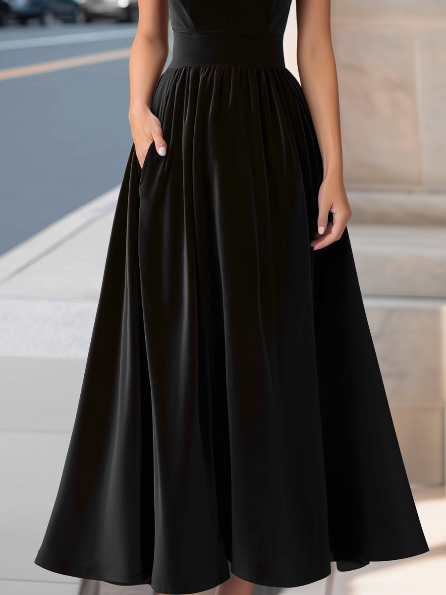Velvet Boat-Neck Sleeveless A-Line Evening Gown