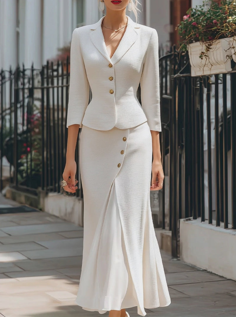 Elegant Textured Buttoned Blazer & Midi Skirt Set