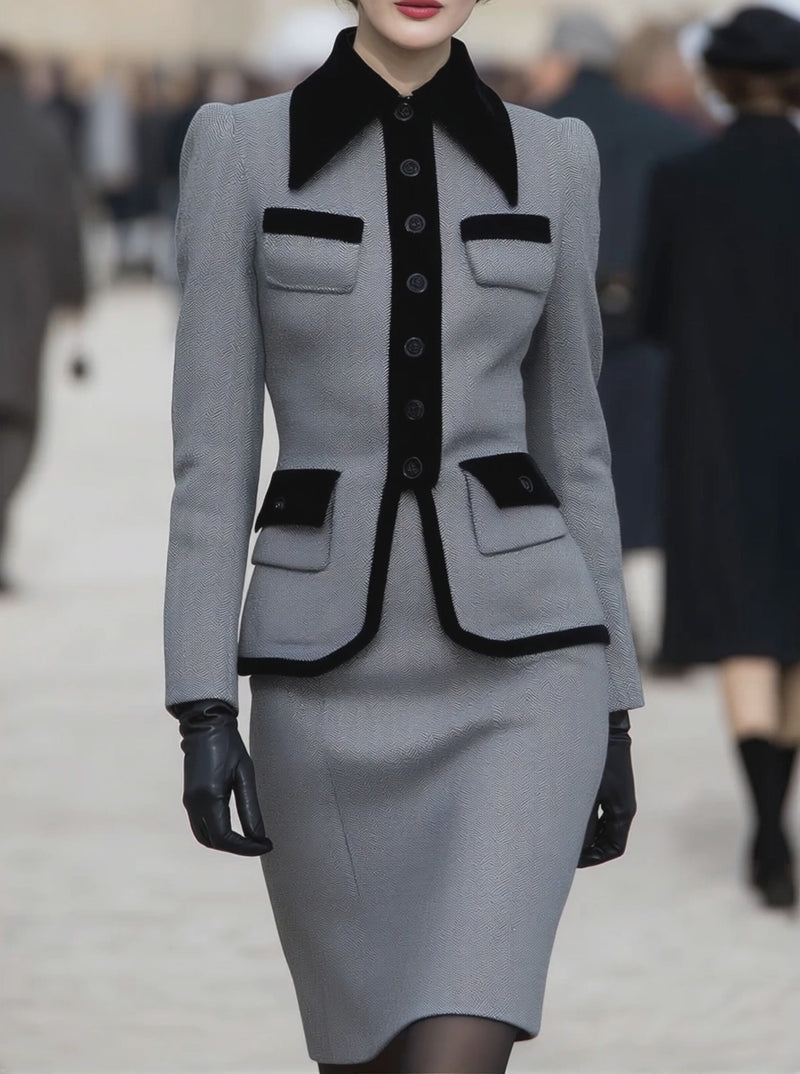Elegant Herringbone Blazer & Pencil Skirt Set