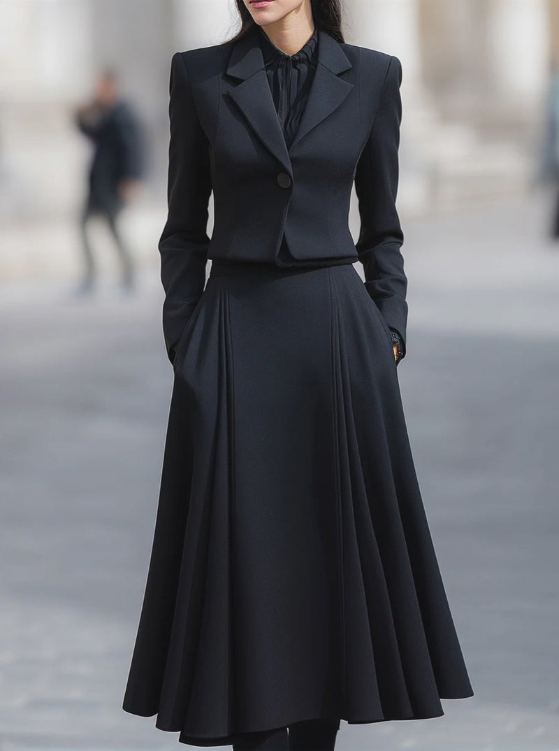 Tailored Blazer & Midi Skirt Set With Structured Elegance