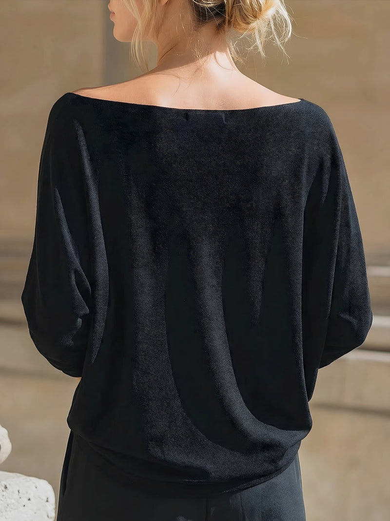 Relaxed Off-Shoulder Batwing Sleeve Knit Top
