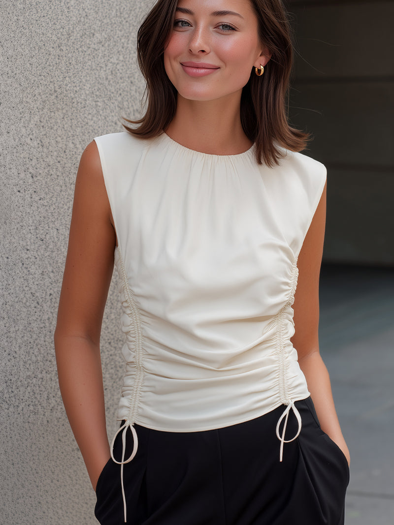 Sleeveless Ruched Drawstring Top T-Shirt