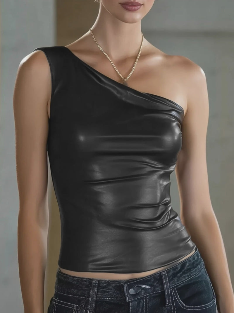 One-Shoulder Sculpted Faux Leather Asymmetrical Top