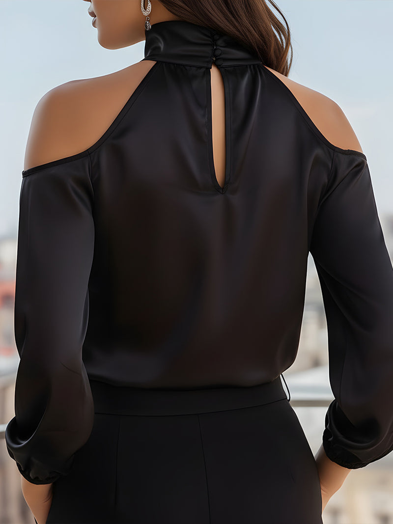 High-Neck Cold-Shoulder Long Sleeve Blouse
