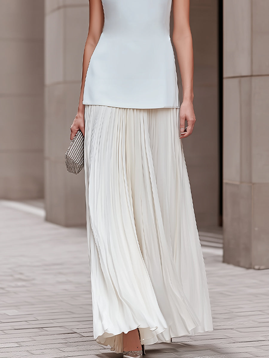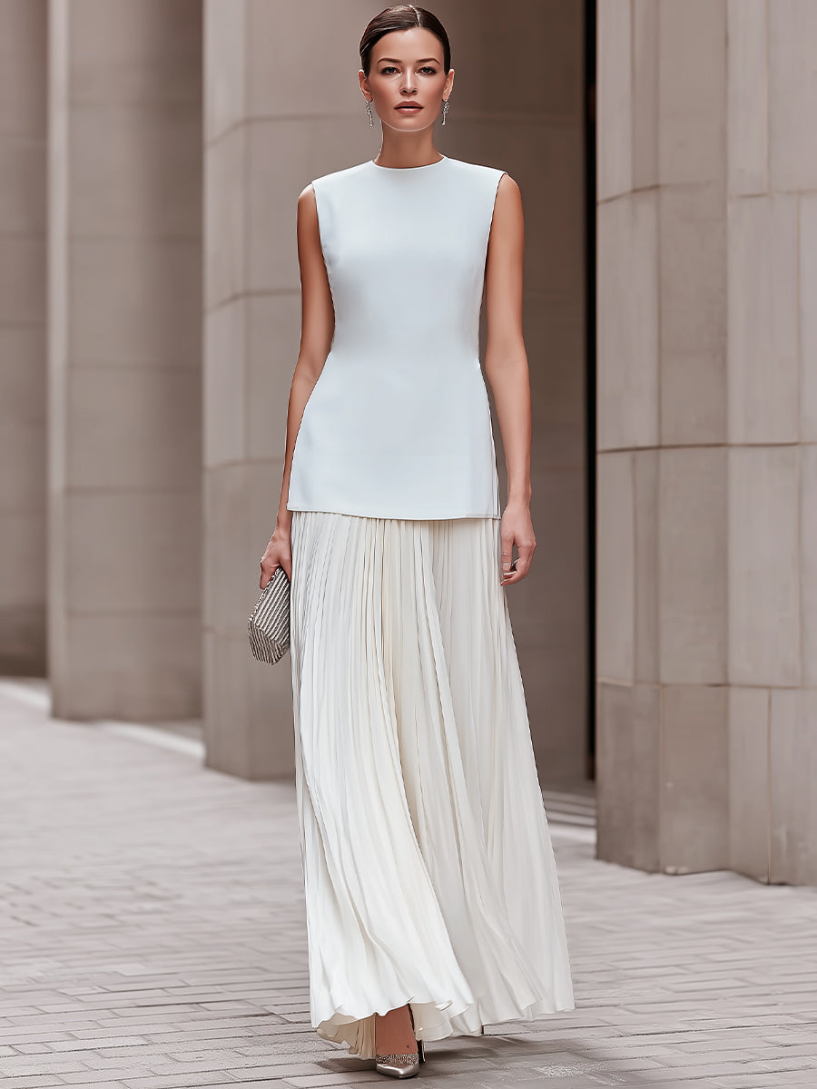 Sleeveless Minimalist Top And Pleated Maxi Skirt Set