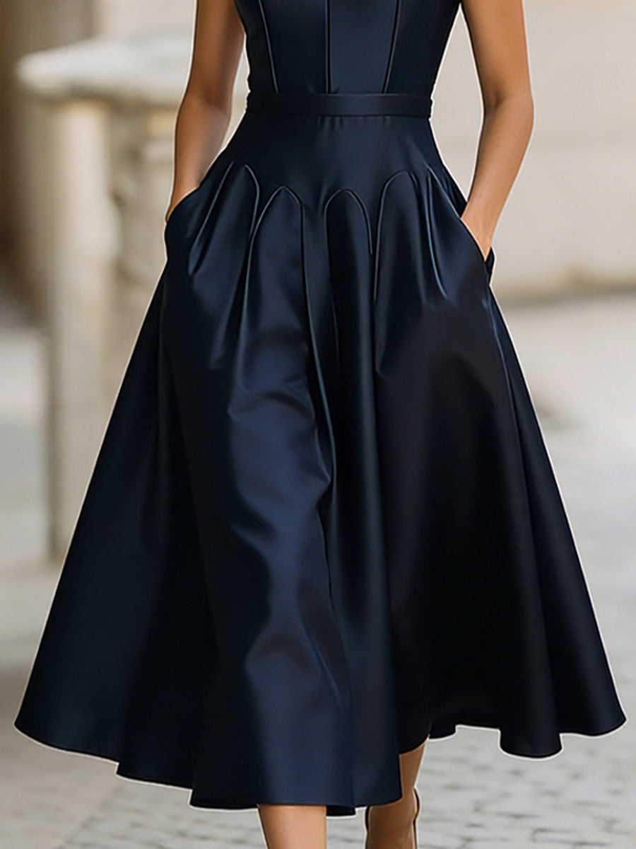 Perfect for formal luncheons, elegant dinners, office events, weddings, or any setting where elevated style is required, this dress seamlessly blends modern structure with classic beauty.
