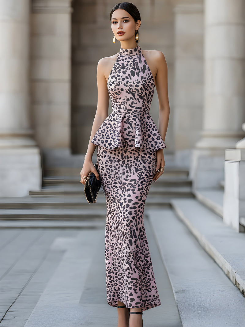 Halter Peplum Midi Dress