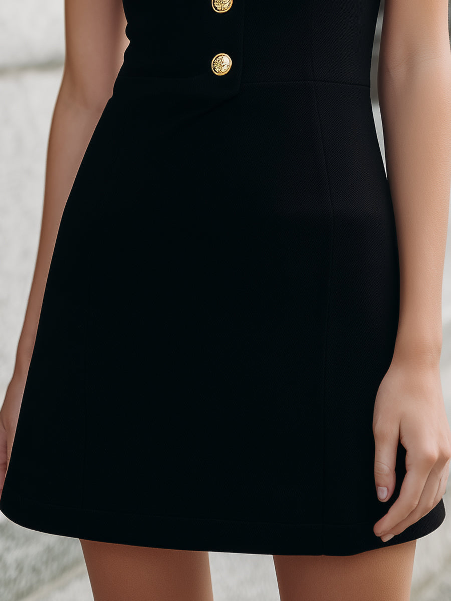 The Black Sleeveless Halter Mini Dress with White Collar Detail captures understated elegance through precision tailoring and timeless contrast. Designed for modern women who value clean lines and elevated simplicity, this dress delivers a refined silhouette that feels both confident and versatile.