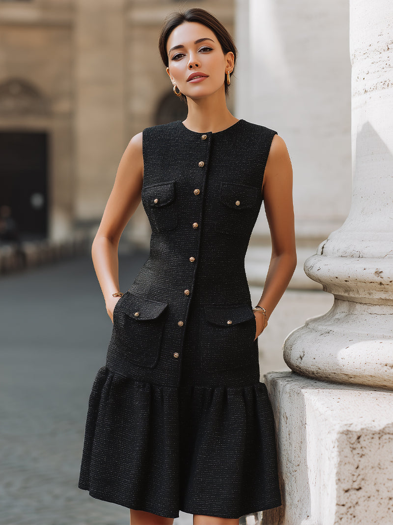 Elegant Tweed Button-Down Peplum Mini Dress