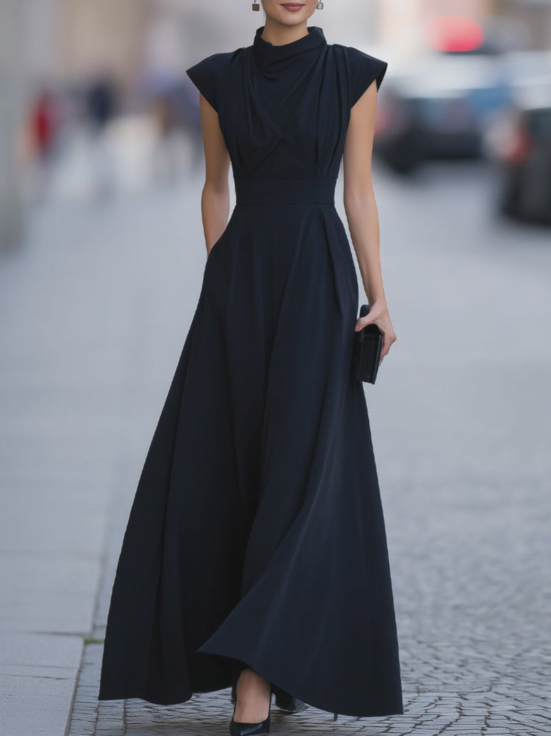 Draped Cap-Sleeve Maxi Dress With Defined Waist