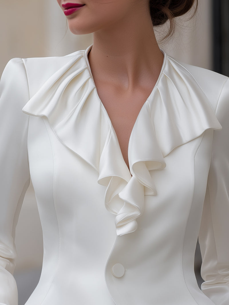 Elegant Ruffle Collar Tailored Long-Sleeve Blazer
