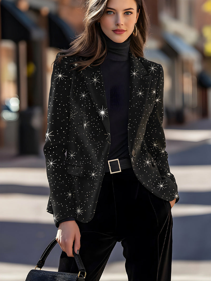 Galaxy-Star Embellished Velvet Tailored Blazer