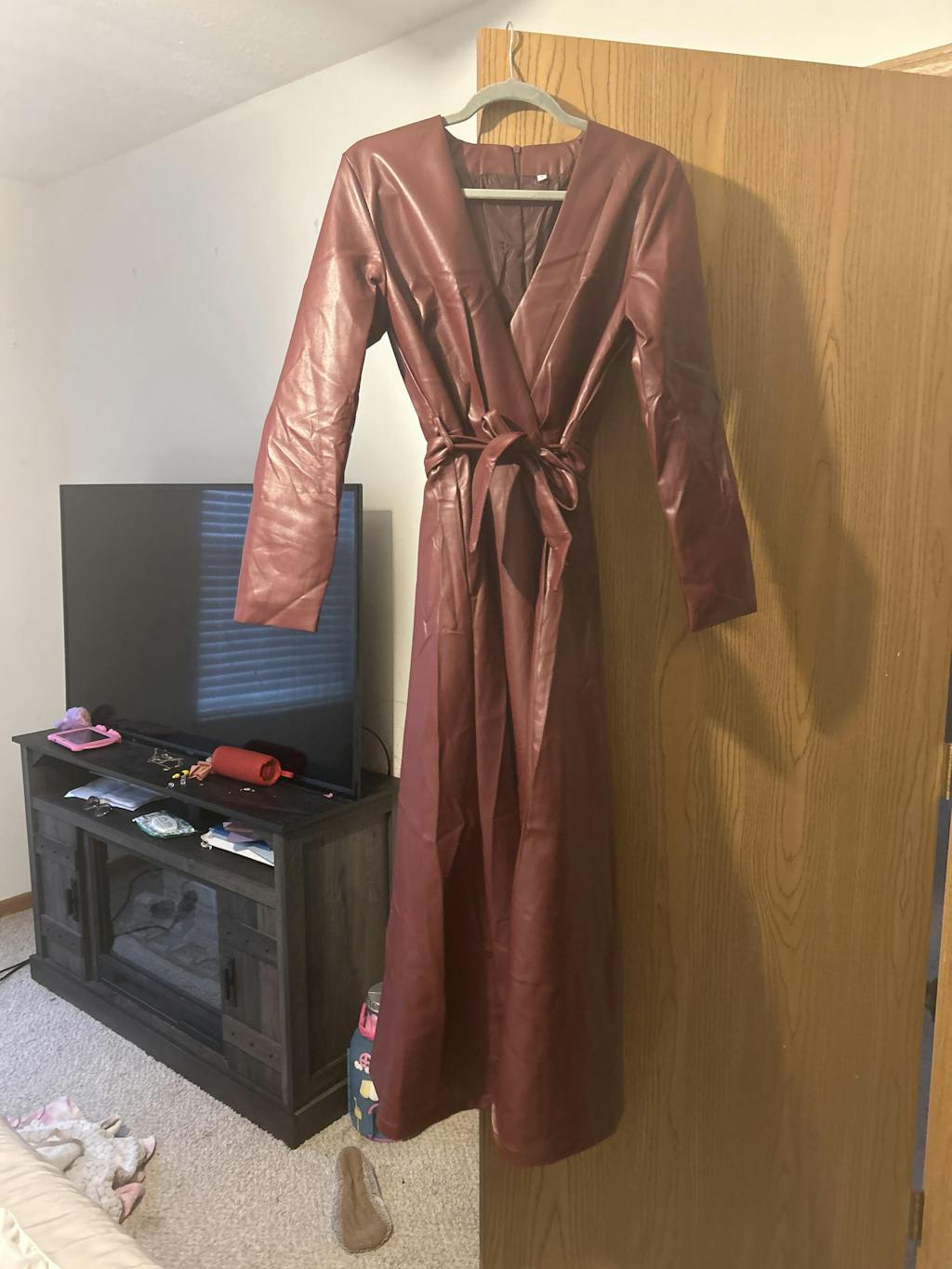 Chic Burgundy Leather Dress