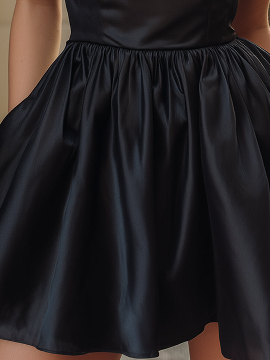 Sleek, luxurious, and exquisitely sculpted, the Elegant High-Neck Satin Bubble Mini Dress is a modern expression of refined femininity. Crafted from smooth satin with a luminous finish, the dress captures subtle light reflections that enhance its fluid lines and couture-inspired silhouette.