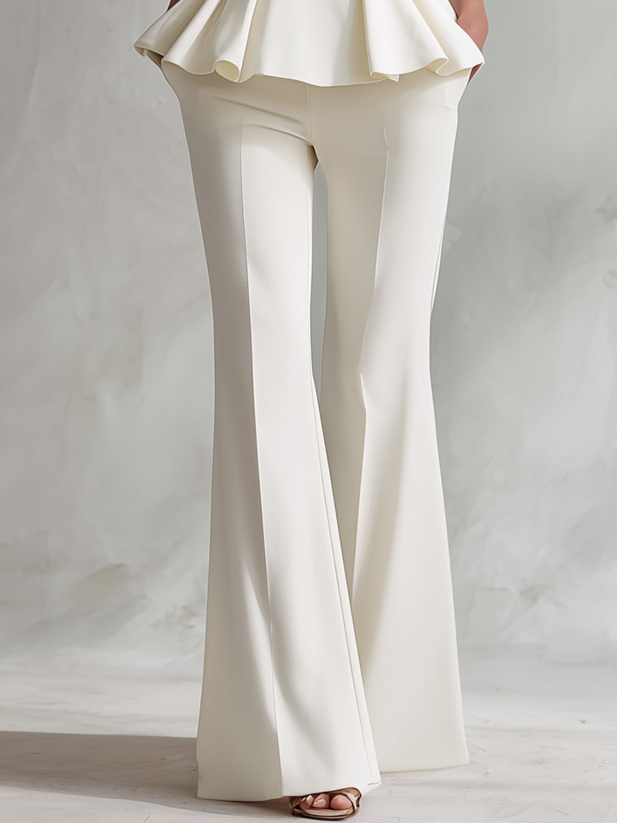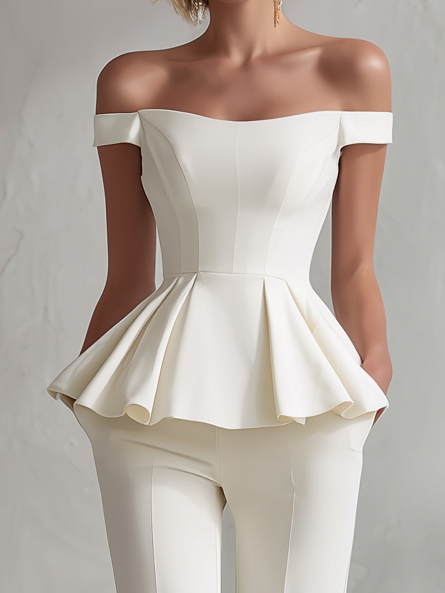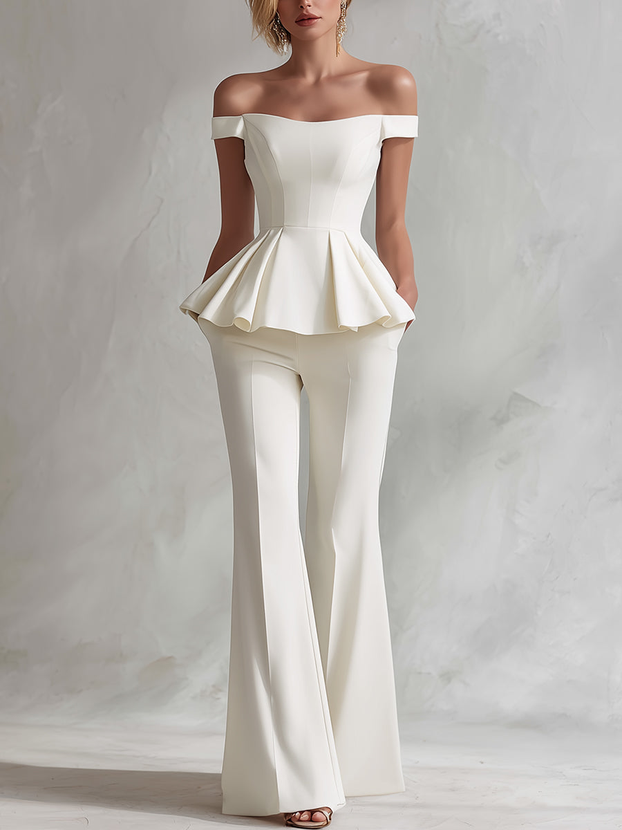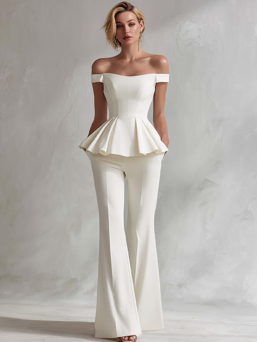 Off-Shoulder Peplum Top And Flared Pants Two-Piece Set
