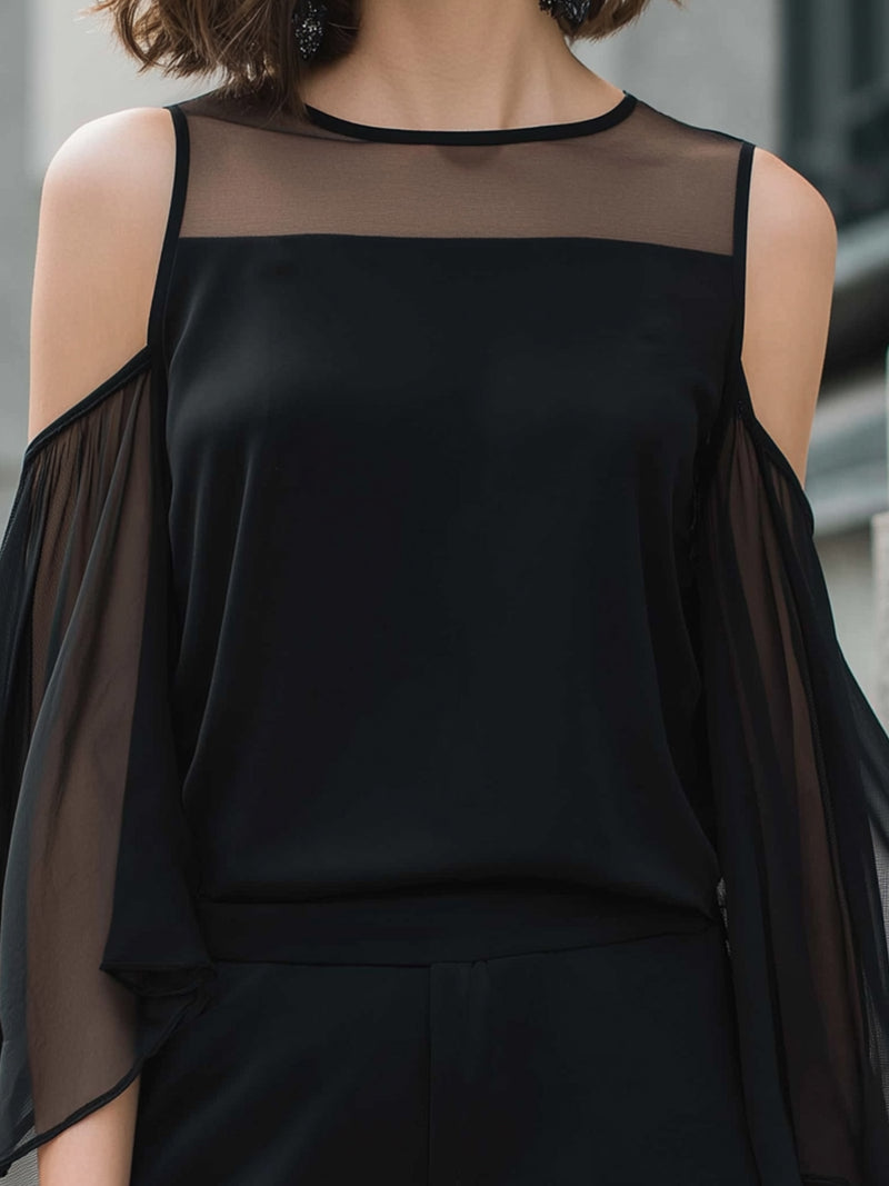 Sheer Cold-Shoulder Chiffon Top & Tailored Shorts Set